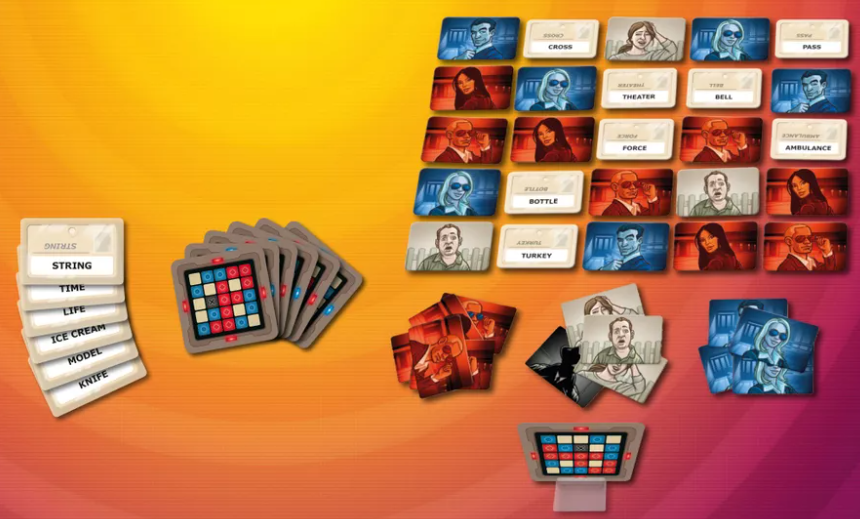 하지만 그 중에는 상대팀의 카드도 있고 어디에도 속하지 않는 중립카드도 있습니다. 따라서 우리 카드만 잘 골라내야 합니다. 이것을 2개 이상의 단어가 공통적으로 연관되는 한 개의 단어를 제시하는 것이 출제자가 줄 수 있는 힌트의 전부입니다. 팀원들은 단어 하나를 듣고 그와 연관 된 단어 카드를 2~3개를 찾아내야 합니다.